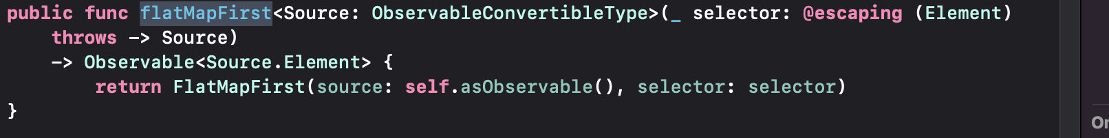 스위치안에서 리턴하는 옵저버블은 이너옵저버블이고, flatMap은 모든 이너옵저버블을 합쳐서 하나의 Result Observable을 리턴한다.