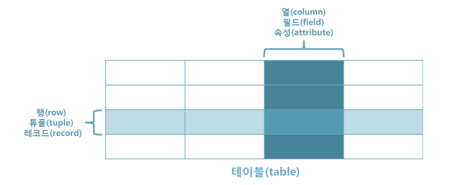 - 각 테이블은 이름을 가지고 있으며, 각각의 테이블은 관계를 맺고있다