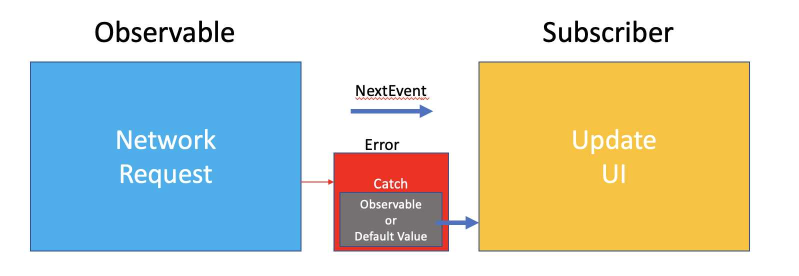 catch연산자를 사용해서 옵저버블로 바꿔서 전달하고 옵저버블에서 기본값이나 로컬캐시를 방출하도록 하면 이런 문제가 해결된다.