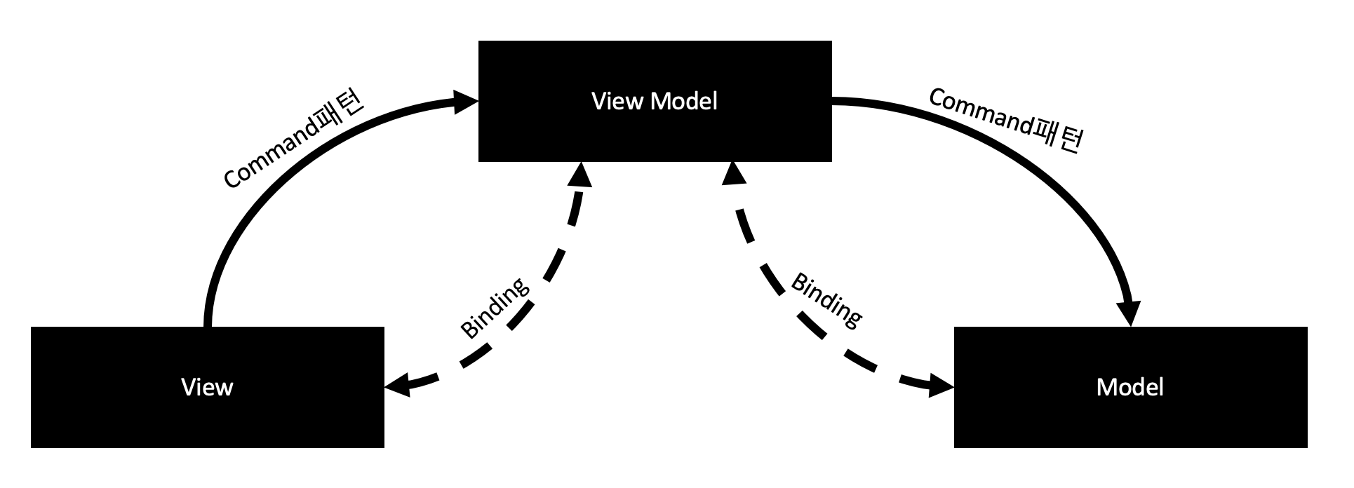 * Command패턴 / Data Binding을 통한 View와 ViewModel의 의존성 제거.