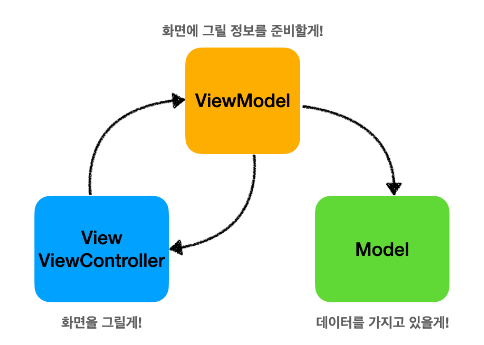 이러한 형태로 만들기위해 ViewModel의 설계가 어렵다는 것이 단점으로 꼽힌다.  이런 Binding을 구현하기위해 클로저등 다양한 방법이 있을테지만 Rx와 Combine을 사용하면 보다 쉽게 구현할 수 있다.
