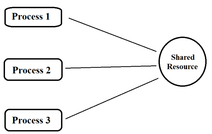 Deadlock - 어떤 프로세스 집단 내의 각 프로세스가 그 집단 내의 또 다른 프로세스에 의해서만 발생할 수 있는 이벤트를 기다리고 있으면, 그 프로세스 집단은 deadlock상태에 있다. 이 그림처럼 차