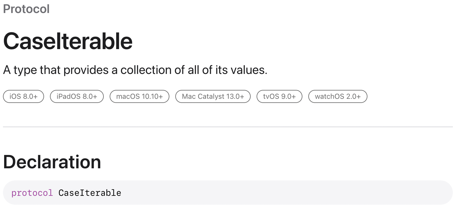 Enum 타입에서 사용할 수 있는 프로토콜이다 (Swift 5.2~)