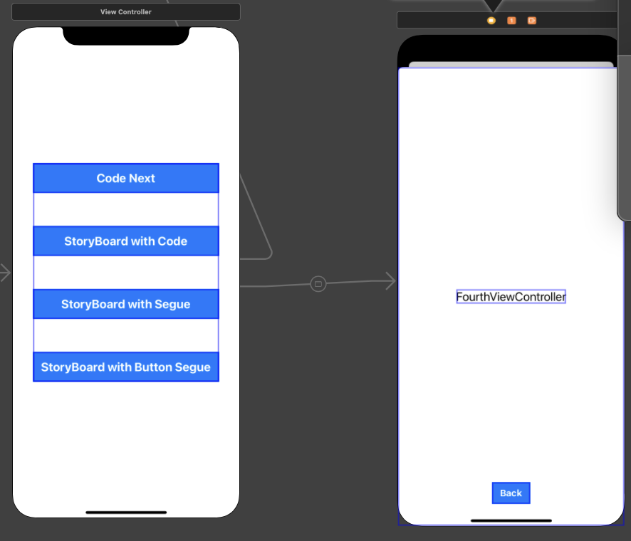 2. StoryBoard with Code: 코드와 스토리보드로 작성한 컨트롤러로 코드로 이동