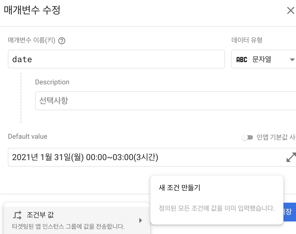 기본값을 설정해 두고 사용자에게 배포를 했다면, firebase 원격구성의 웹 콘솔을 통해 설정해둔 프로모션텍스트 키 값을 변경할 수 있다.