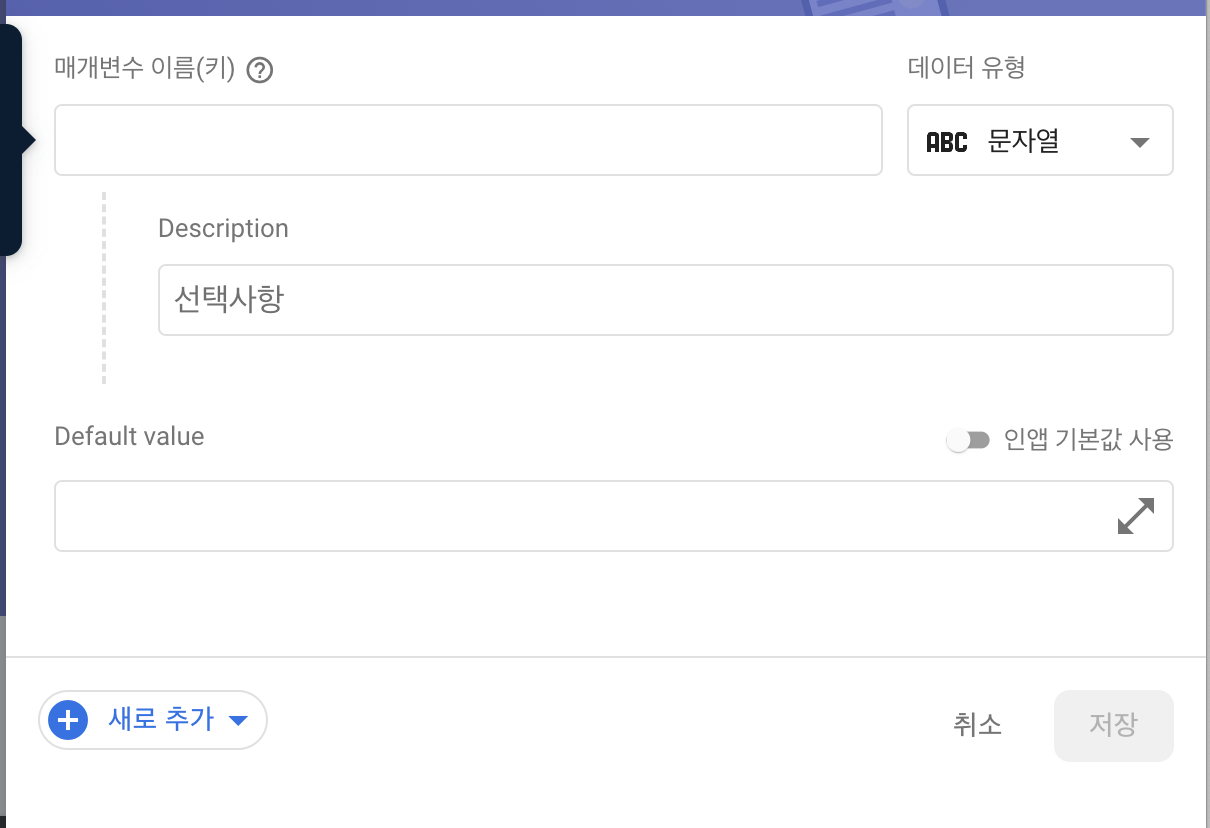 프로퍼티 리스트에서 생성한 매개변수 키와 벨류를 추가할 수 있다.