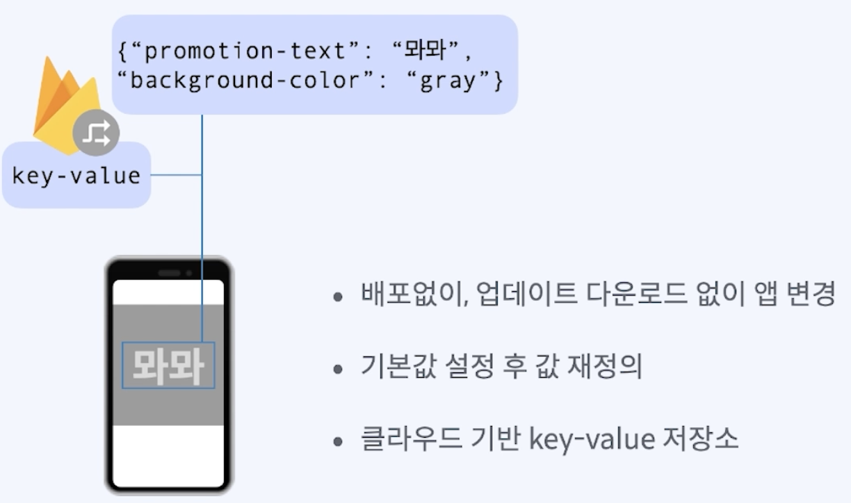 원격구성은 키 벨류 형태로 설정하며 기본값을 업데이트하는 방식.