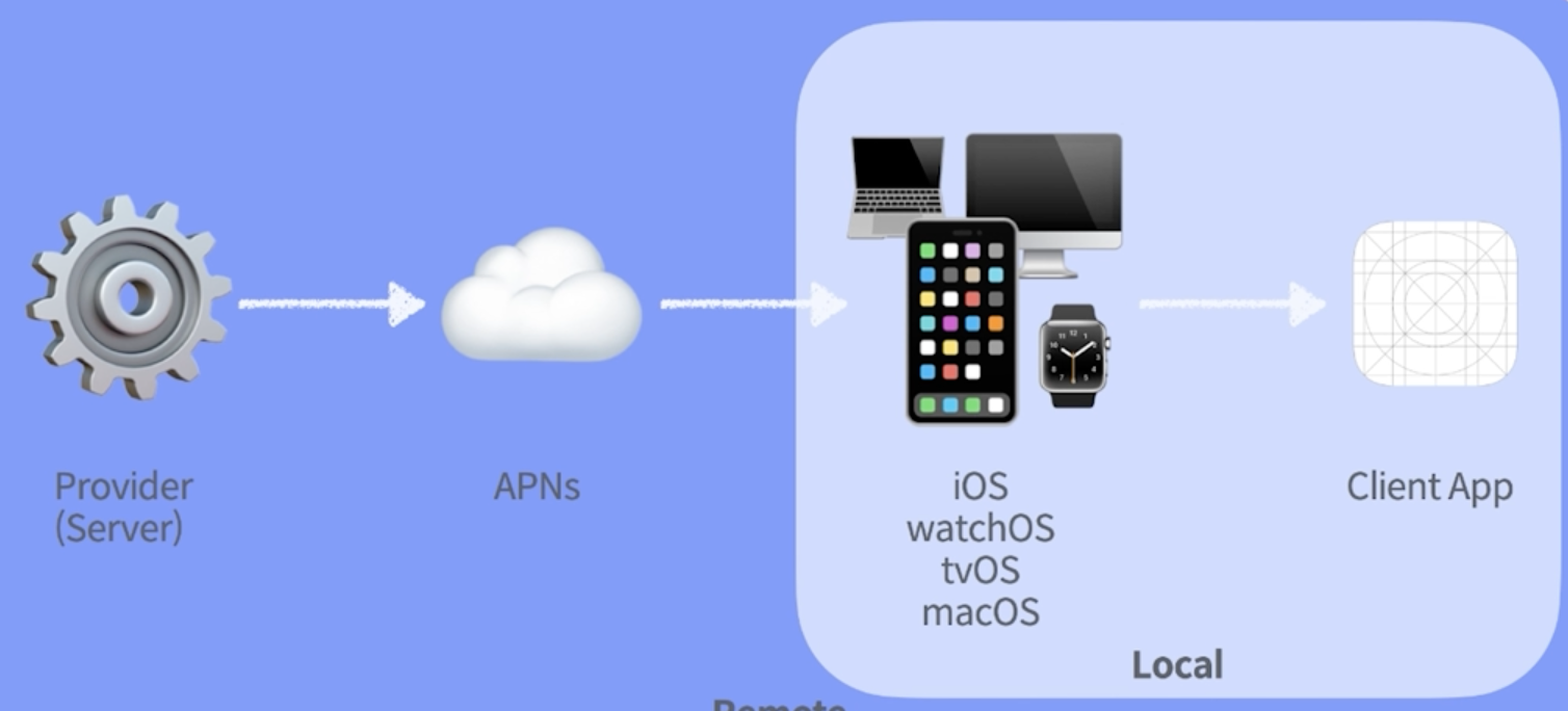 서버에서 APNs를 거쳐 로컬 기기에 전달되게된다.