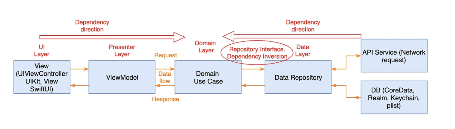 Presentation 레이어 ➡️ Domain 레이어 ⬅️ Data Repository 레리어