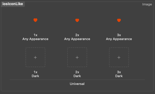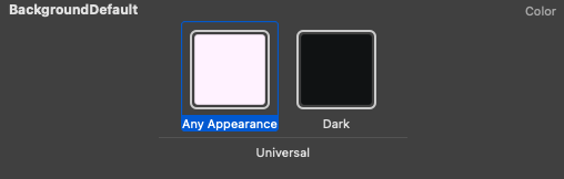 Color Assets을 추가할 때 Appearance에서 None이 아닌 Any, Dark를 선택해준다.
