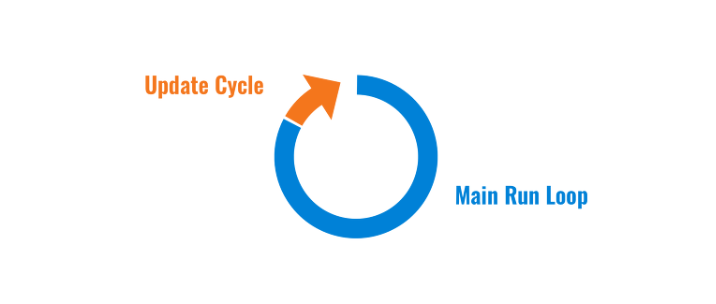 update cycle은 main run loop가 이벤트를 각각의 대리자에게 처리하도록 권한을 넘기고, 이벤트가 처리된 후 권한이 main run loop에 돌아오면 updatecycle이 실행됩니다.