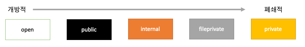 Swift의 접근제어자는 단계별로 5개의 단계가 있습니다.