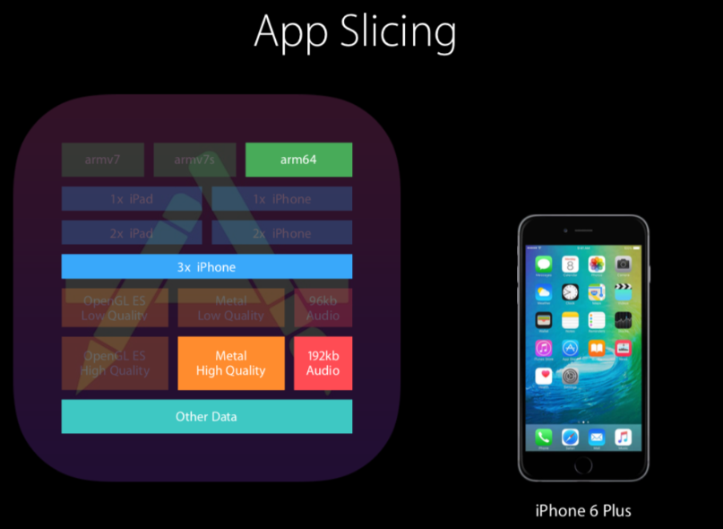 아이폰 6+를 위한 App Slicing은 아래와 같을 것입니다.