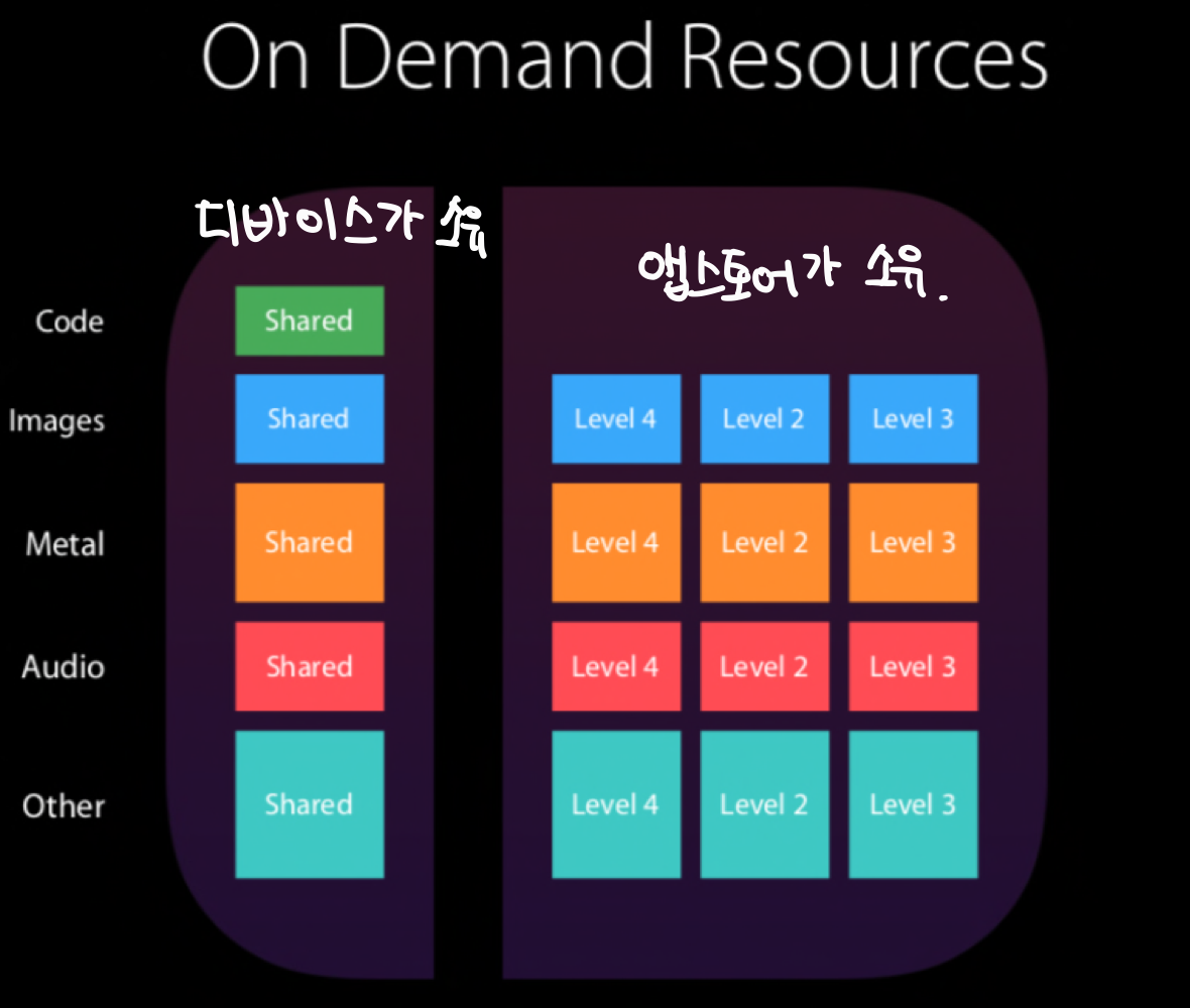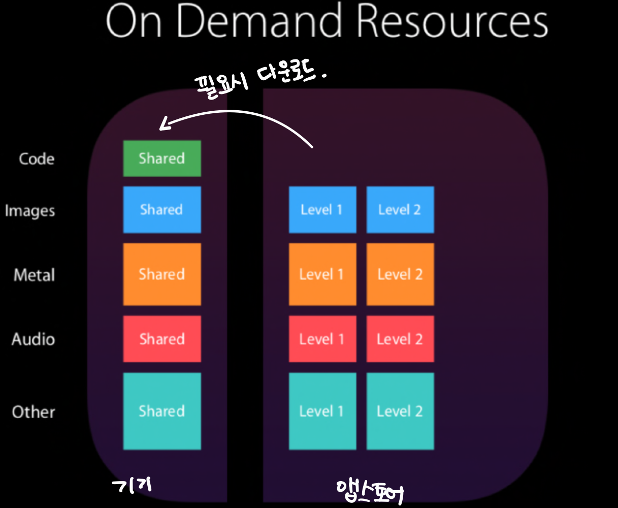 - ODR은 앱스토어에 *IPA와 별도로 저장됩니다.