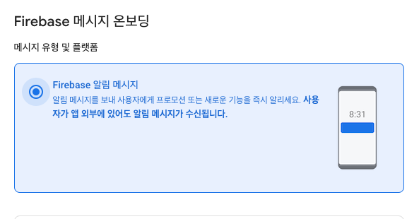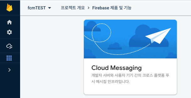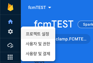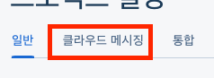 Firebase 콘솔에서 생성한 프로젝트 > 톱니바퀴 > 클라우드메시징으로 진입합니다.