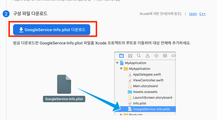 이제 XCode프로젝트에 GoogleService-Info.plist파일을 추가해줍니다.