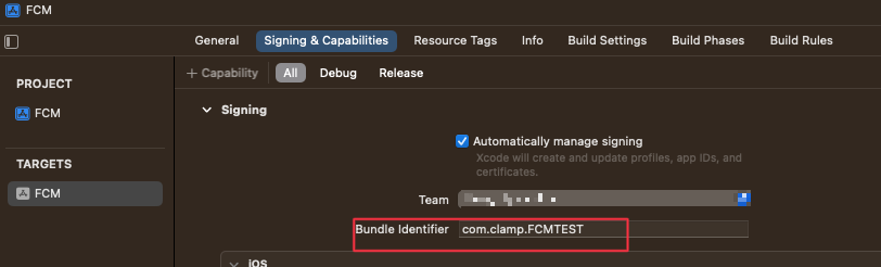 BundleID는 FCM을 사용할 프로젝트에서 찾을 수 있습니다.