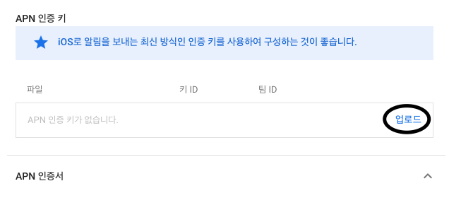 여기서 p8파일은 APNs를 사용하기위해 Apple에서 제공하는 인증서입니다.