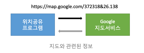 여기서 https://map.google.... 는 "위치공유 프로그램", "Google지도서비스" 사이를 이어주는 다리역할을 하고있습니다.