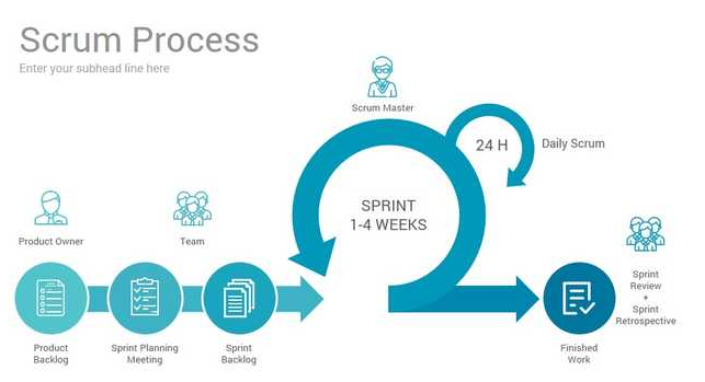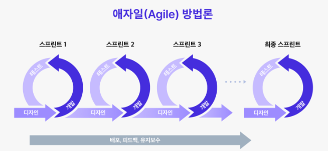 - 짧은 주기의 개발 단위(스프린트)를 반복하여 하나의 큰 프로젝트를 완성해 나가는 방식이다.