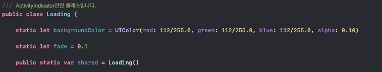 1. 우선 액티비티 인디케이터를 관리할 클래스를 생성하였습니다.