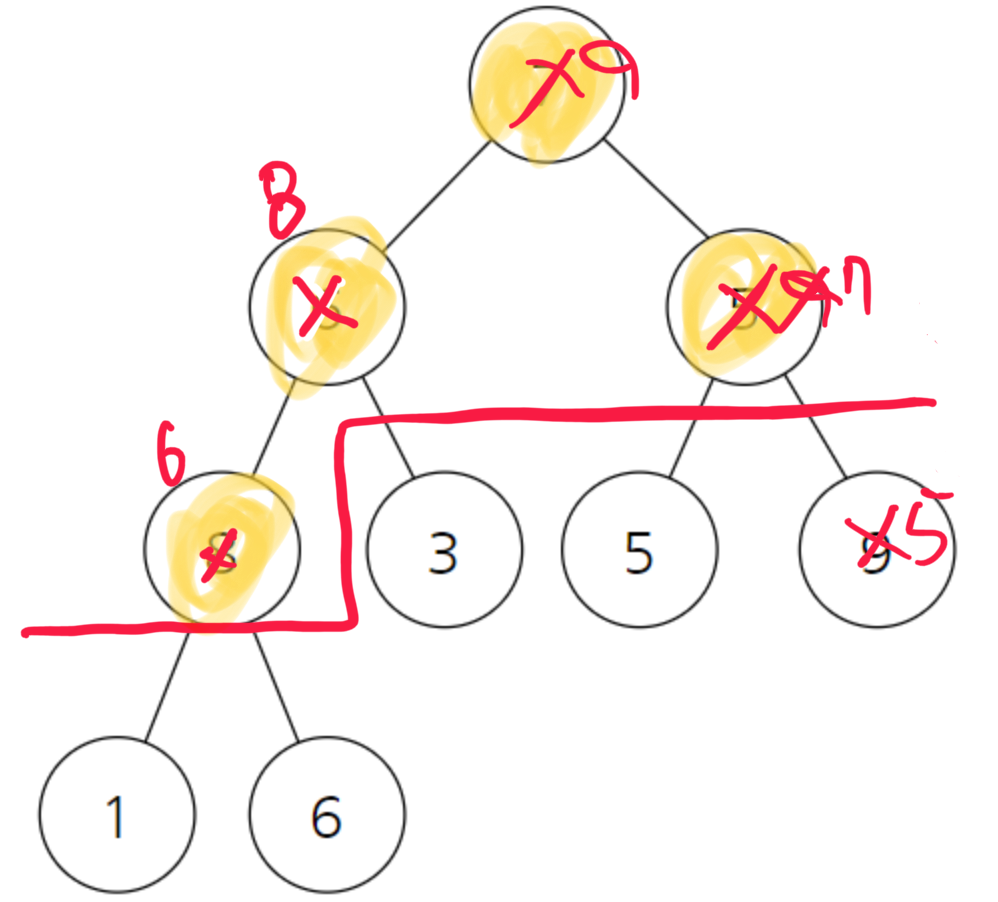 5의경우 자식인 5와 9를 봤을때 9가 더 크다 자리교환이 일어난다.