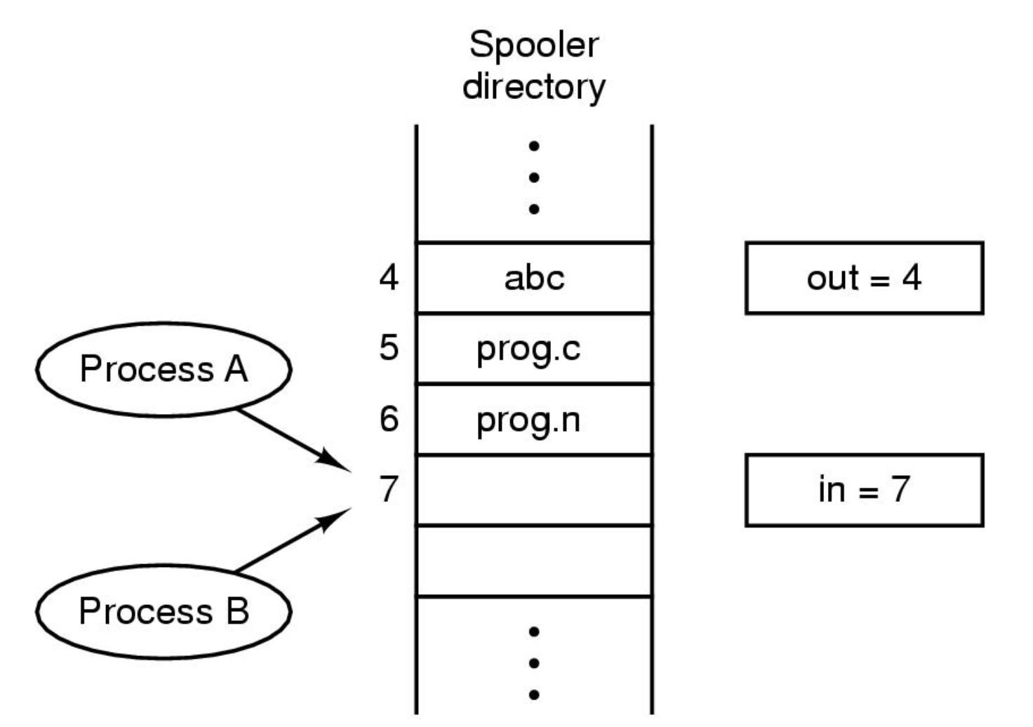 만약 프로세스A와 프로세스B가 모두 Spoler에 파일을 동시에 기록하려한다. Spoler에는 6번 메모리까지만 file이 쓰여있다.