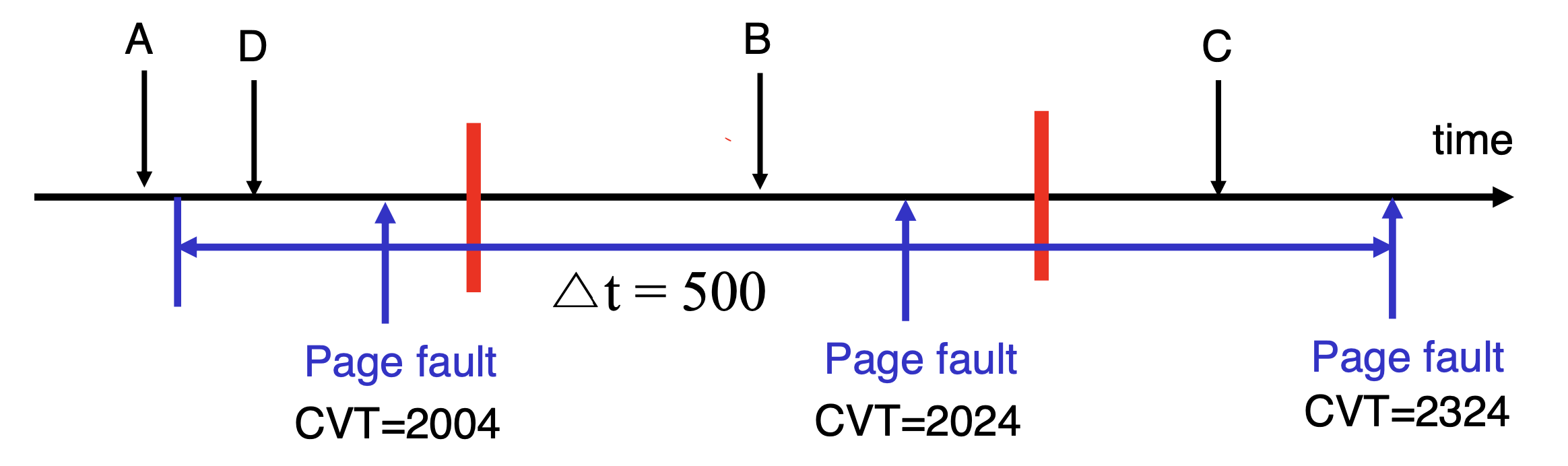 CVT(Current Virtual Time): CPU의 time을 이용한 가상 시간이다.