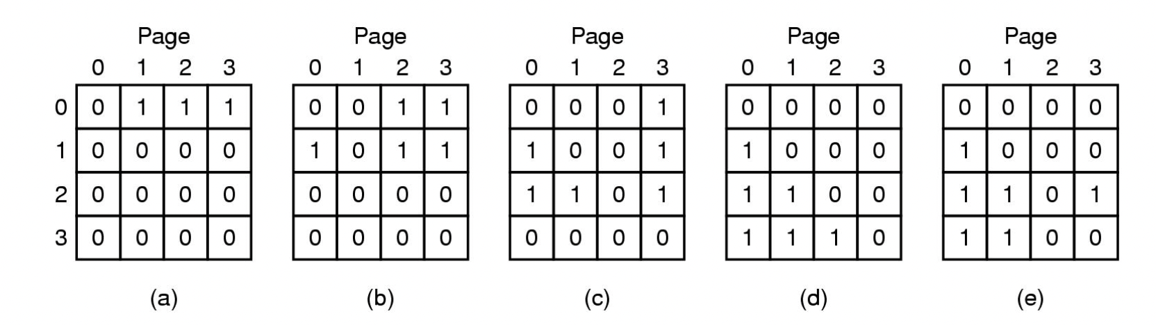 이렇게 나아가다 보면 최근에 사용된 페이지의 열에는 1이 많을 것이고 가장 사용이 안된 페이지의 열에는 0이 많을 것이다.