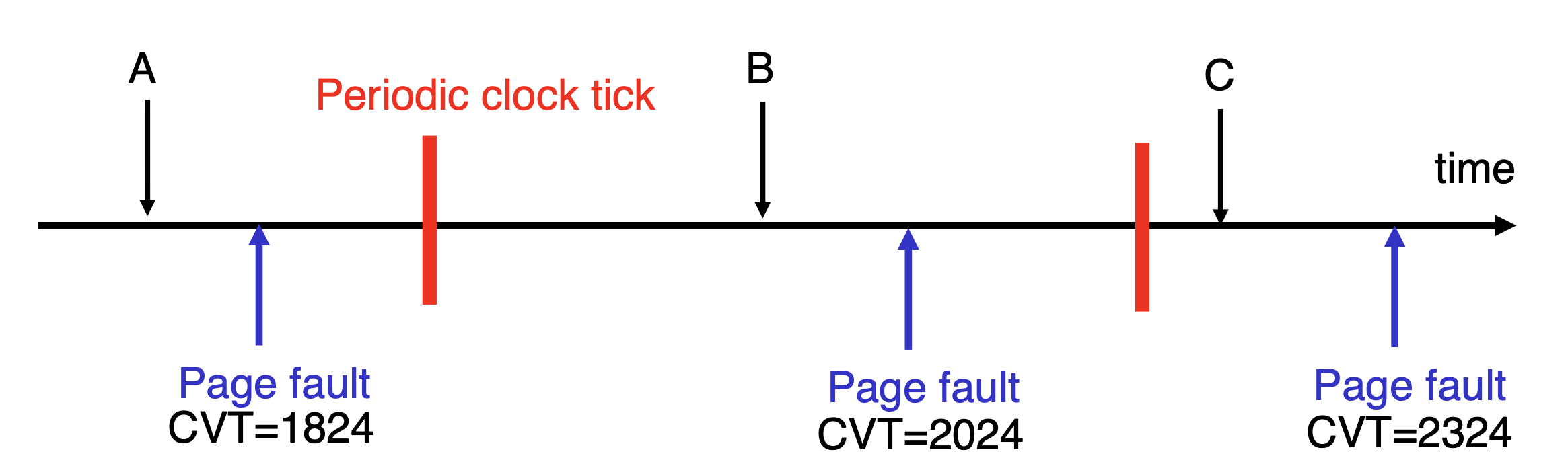 매 page fault에서 R = 1인 페이지는 CVT값을 TLU에 기록한다.