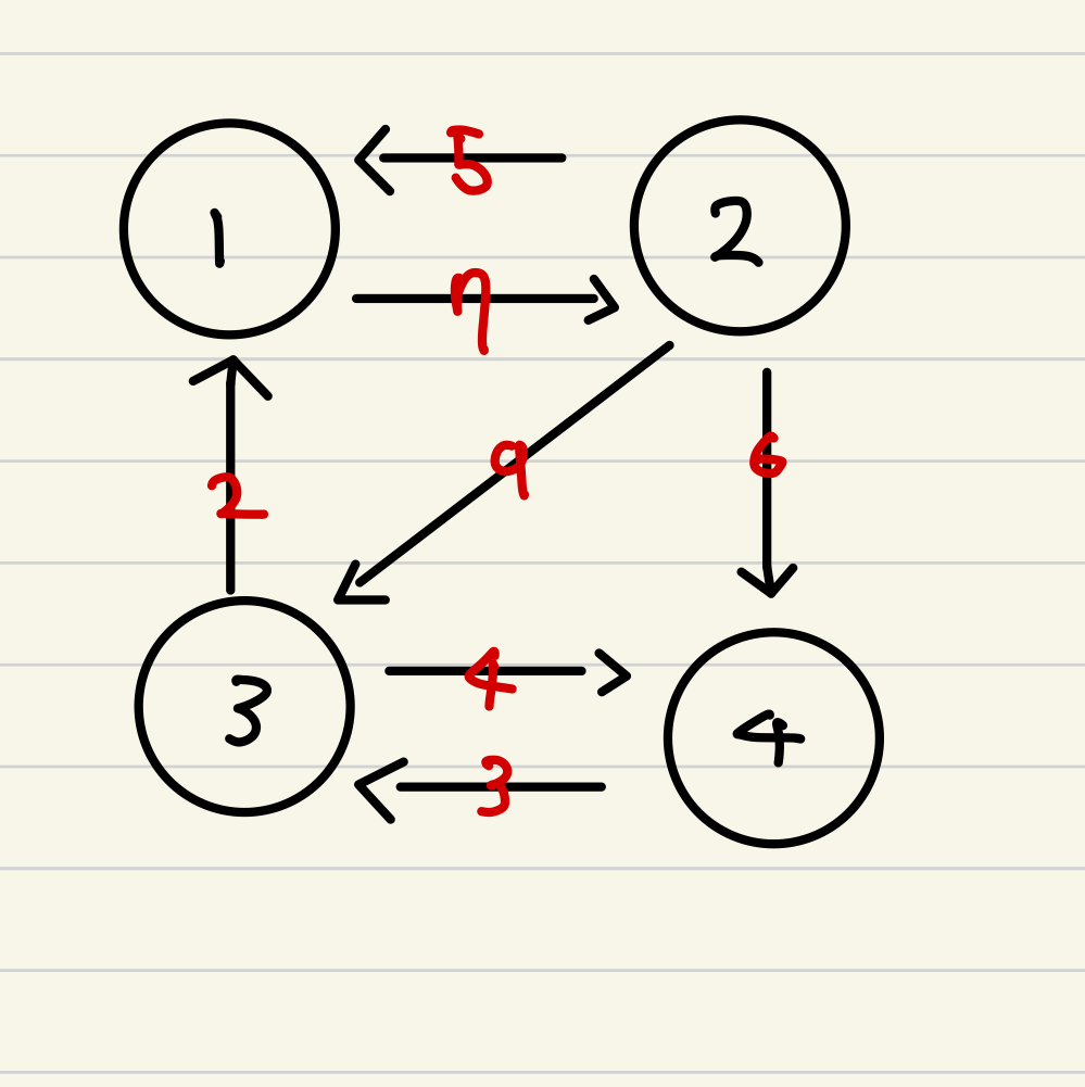 각각에 노드에서 각각의 노드로 가는 비용을 적게된다.
