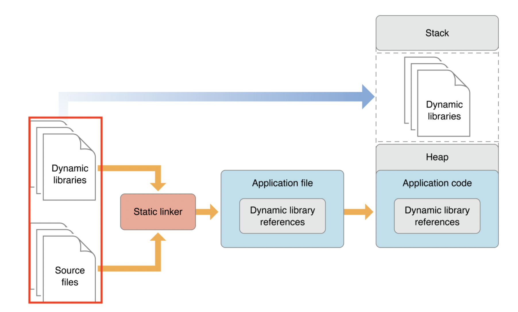 이 때 Static linker를 사용해 앱의 Source files와 Static Libraries를 merge하게된다.